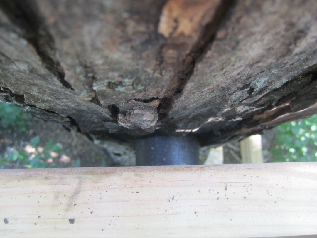 Our Garnier Limb fully installed - driven 6" into the tree on both sides. Here it is touched up with a little extra rust proofing paint on top of the galvanizing since we took off a bit of the coating when we cranked on them with the pipe wrenches.